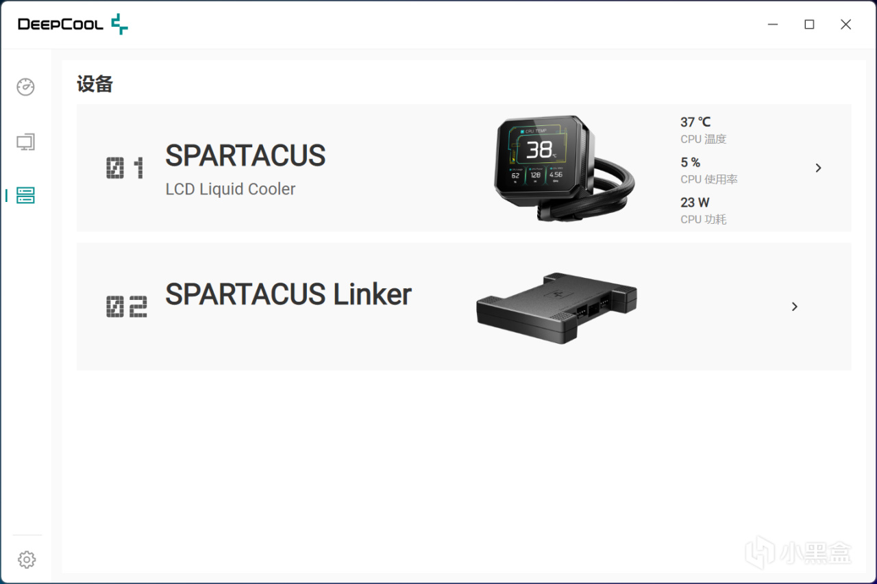 冰暴360 PRO配套的DeepCreative软件,界面UI设计简洁,在设备这一栏能设置屏幕内容和HUB各种参数。
