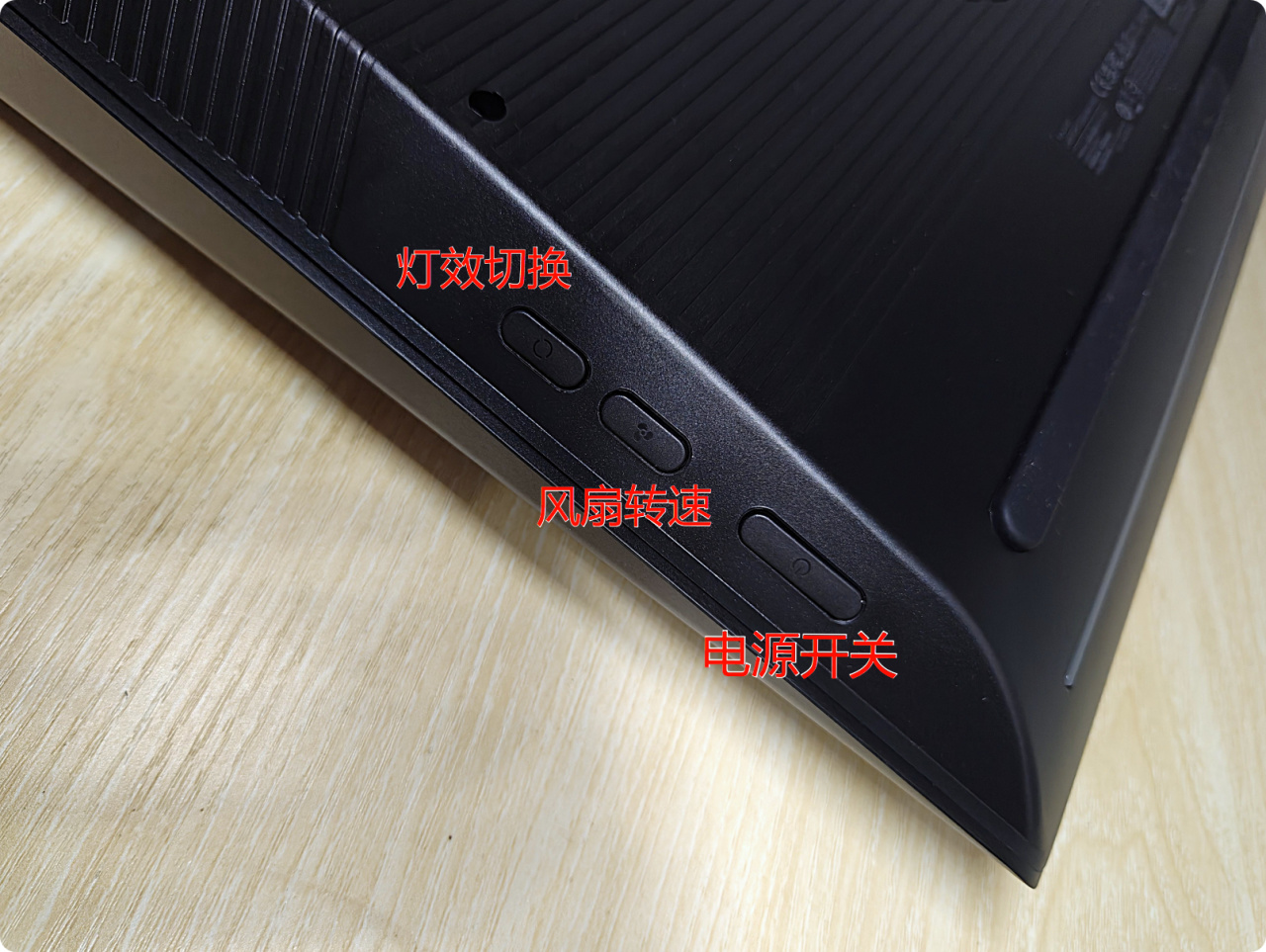 右側有三個按鍵:電源、風扇檔位、燈效切換,全部免驅。如果想用智能調速,需要裝雷雲4。