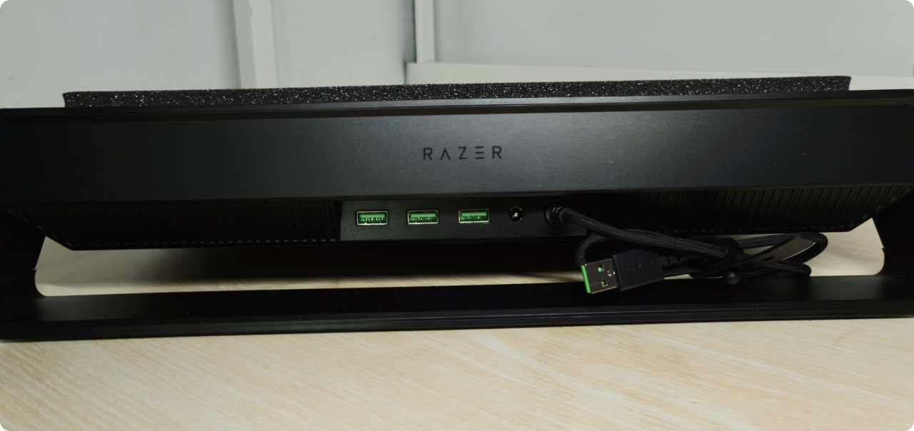 供電方面,雷蛇用了雙線設計:一條 USB 負責燈光和數據,另一條 DC 適配器專門給風扇供電。
