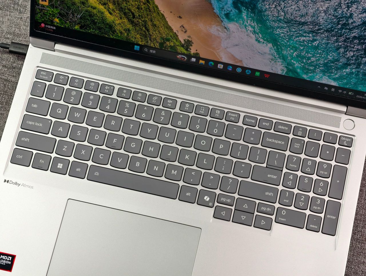 16寸的机身规格,自然给到了全尺寸键盘,而且键盘两侧还有对称的扬声器开孔——可不是那种凑数的“快乐孔”,实际音质表现有保障。