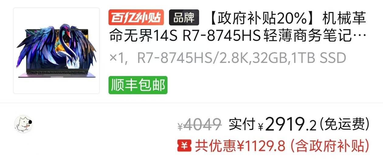 2025年,也就是我研二的时候,就已经无法忍受游戏本的各种缺陷了,趁着国补换了鸡哥,再次怀念当年的好价。