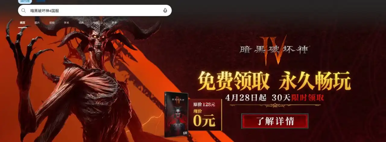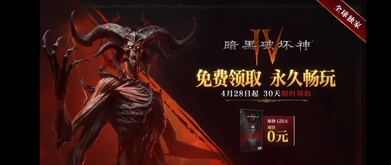 重磅喜加一,原價128元的《暗黑破壞神4》在4月28日開啓了限時免費領取,持續30天!
