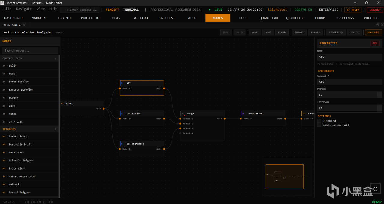 Fincept 軟件 100%免費,但數據源分免費和付費。你自己申請 API Key,在可視化編輯器拖拽連接,無需編程。