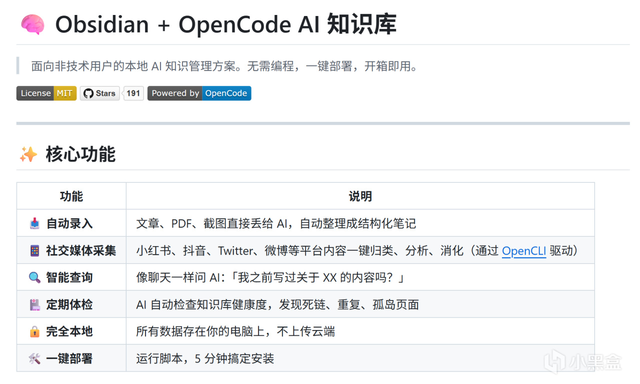 以 Obsidian 爲筆記載體、OpenCode 爲 AI 接口,打造完全本地化的 AI 知識庫,所有數據存儲在本地電腦,不上傳雲端,保障隱私安全。