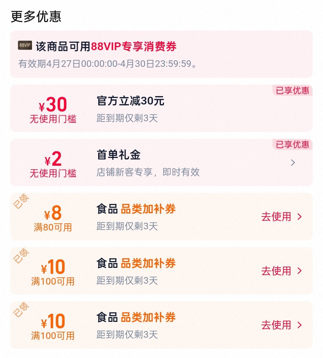 2.複製口令商品頁點價格那個頁面,下滑領100-10食品加補券(圖五)