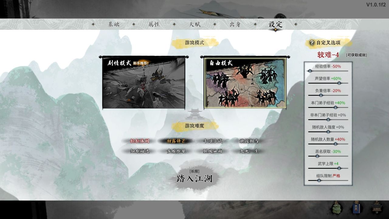 可在“开始游戏”>>“设定”中调整,自定义选项会在所选难度的基础上产生影响,见图1。