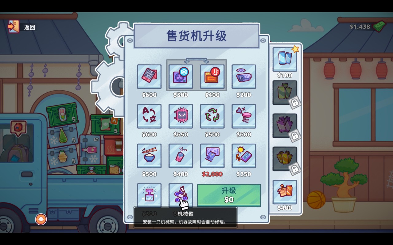 在这款经营模拟游戏里,你可以买下或租下一台售货机,摸清不同街区的消费口味,盯紧当季的热销爆款,再从商店进货上架——