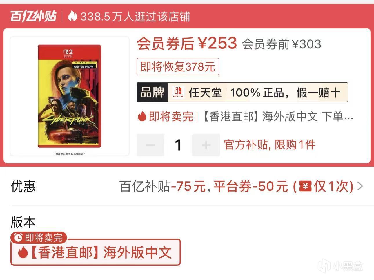 1.NS2海外版中文《赛博朋克2077终极版》253元全新包邮