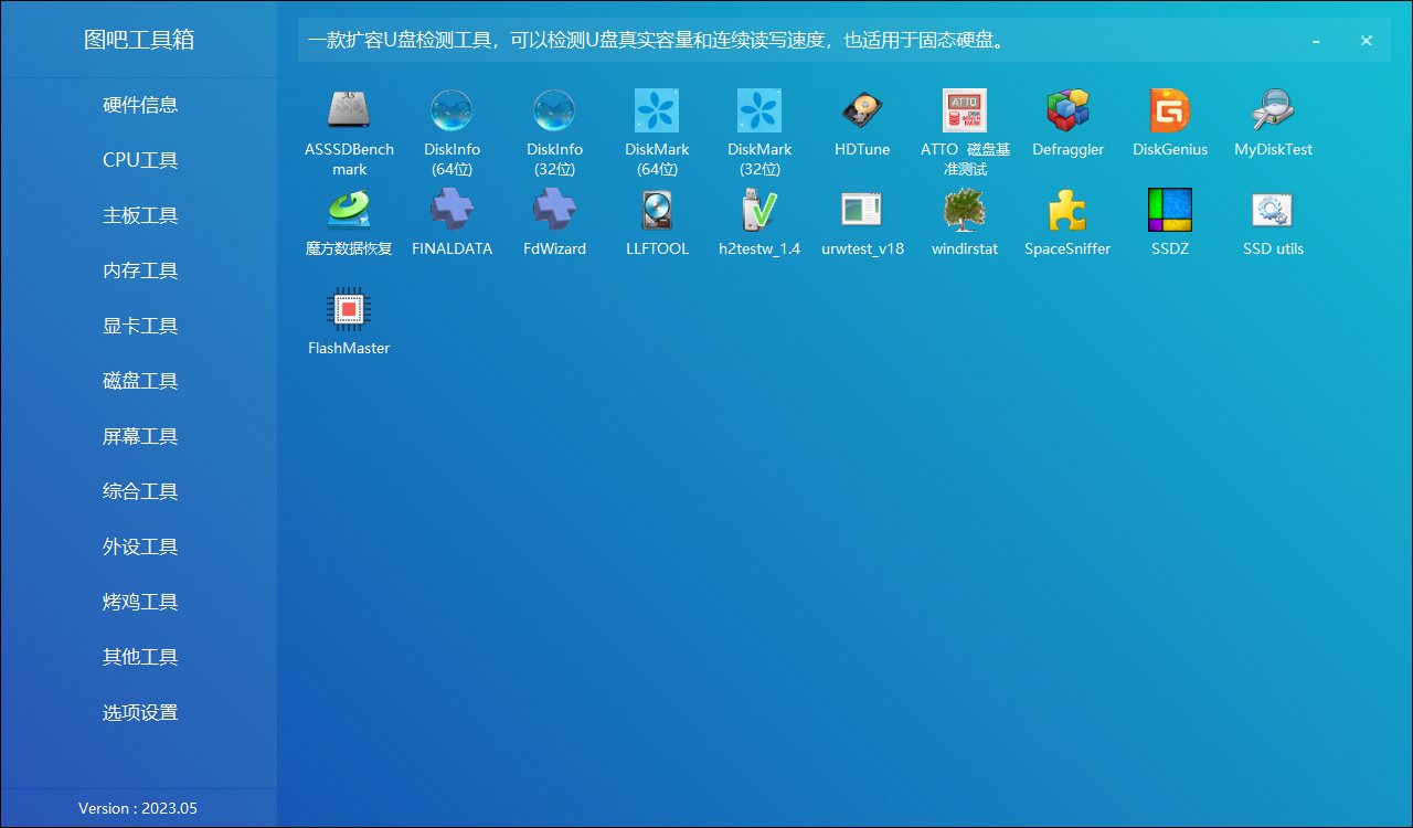 如果說格式化之後,依舊還是正常容量可以正常使用,那這種情況就代表東西沒問題嗎?其實並不是,我朋友騎貓前段時間給手上的數碼顯微鏡購買TF卡就出現了這種情況,格式化之後依舊可以使用,但最後還是檢測出來是擴容卡,所以這種情況下我們還是不能掉以輕心,直接上工具,這裏我選擇了圖吧工具箱中集成的軟件,早在23年就給大家推薦過,我應該也是小黑盒第一批推廣圖吧工具箱的作者了,我現在使用的依舊是圖吧工具箱2023。
