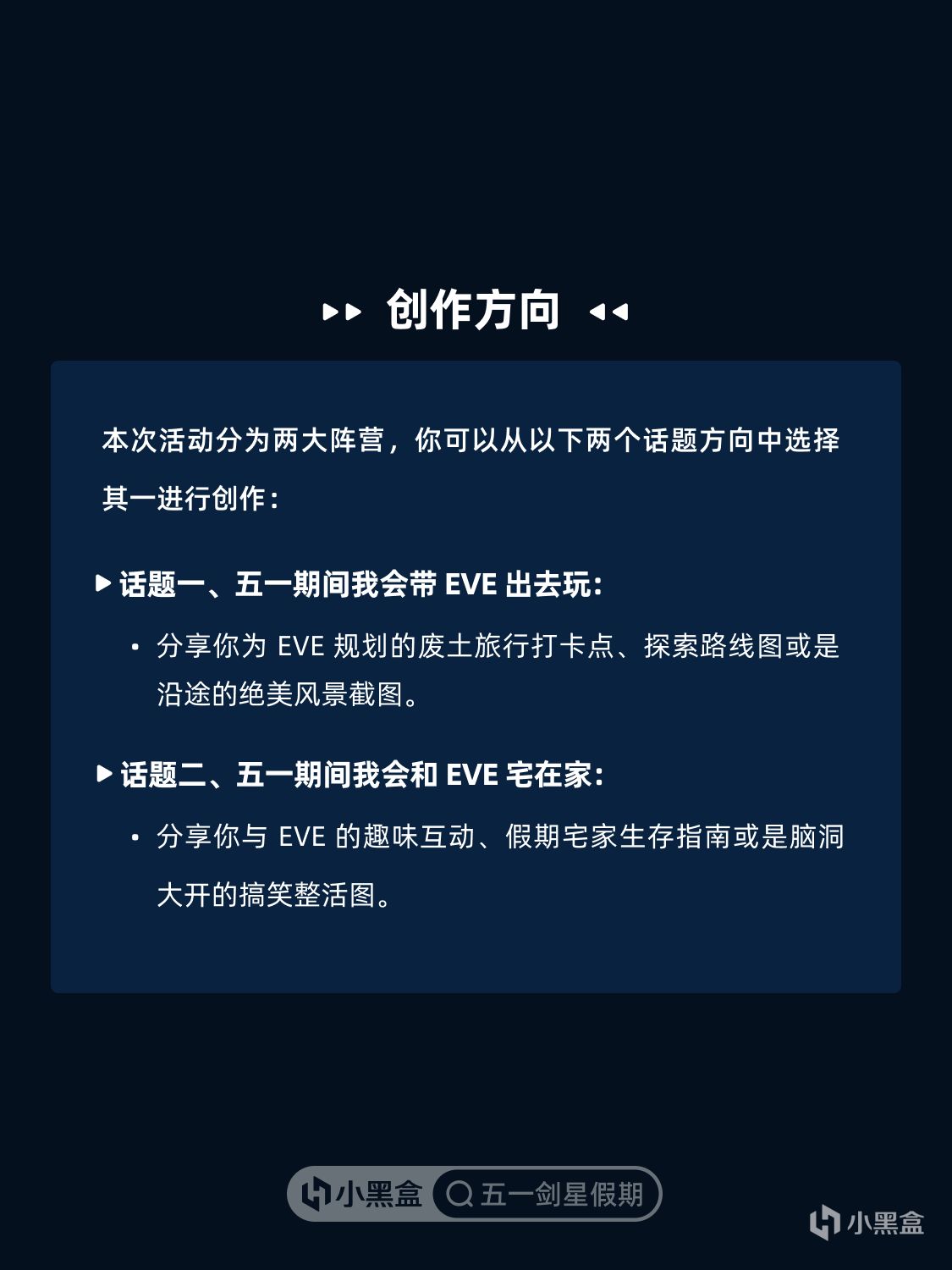发布内容必须包含 EVE 或《剑星》的游戏元素(如:游戏截图、旅行路线图、趣味整活图等),字数不少于10字。通过活动审核即视为成功参与。