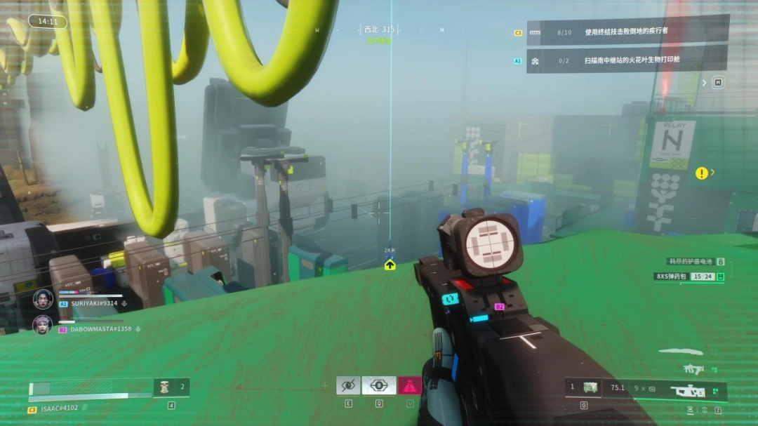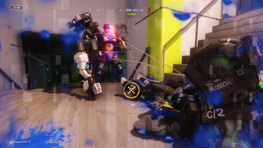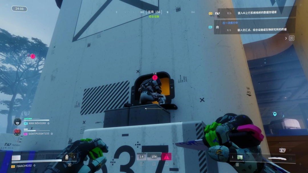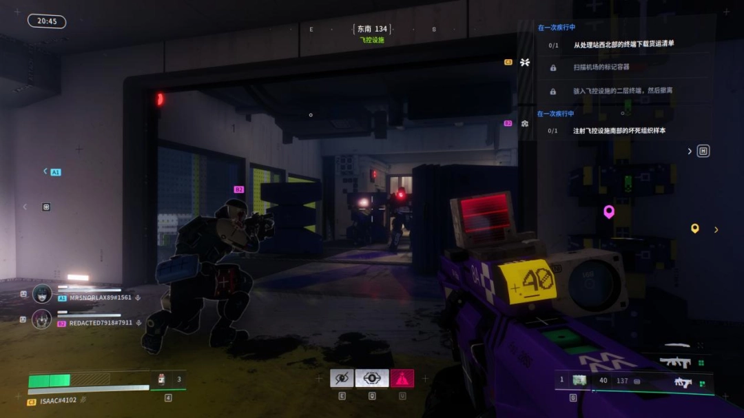 與此同時,諸如撤離點開啓後用光柱全圖通報、建築內部設置能夠掃描一定立體範圍內所有單位的終端機、不間斷巡邏並壓力玩家開槍暴露信息的AI敵人等種種細枝末節的設計,也同樣在不斷強化着PvP戰鬥在《失落星船:馬拉松》所佔的比重。在整個遊玩過程中,令我感到尤爲有特色的一點是,強大的AI敵人會鼓勵玩家用槍解決問題,這一點地圖等級越高就越明顯。但如果真的用槍解決問題,又很可能會因爲聲音暴露吸引周圍的其他玩家,從而導致敵在暗我在明,所以你必須做到“藏好自己,做好清理”。