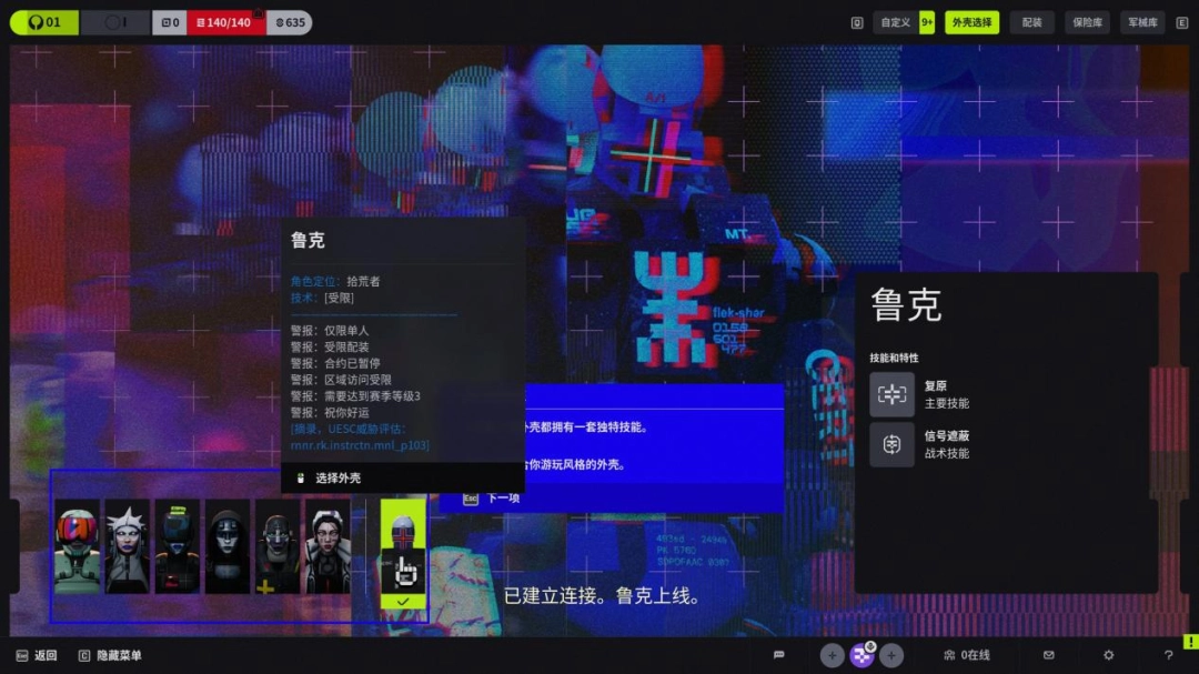 與此同時,《失落星船:馬拉松》還添加了名爲“外殼”的英雄系統,且十分大膽地爲每個外殼配備了同類型遊戲中想都不敢想的強大技能。舉幾個具有代表性的例子:“救援”可以遠距離瞬間把倒地隊友拉起,“刺客”可以進行長達數十秒的光學迷彩隱身,“盜賊”則具有隔牆透視高價值物資、隔空干擾敵對玩家視野,以及直接偷取敵對玩家包內的高價值物資等“三體人”級別的能力。