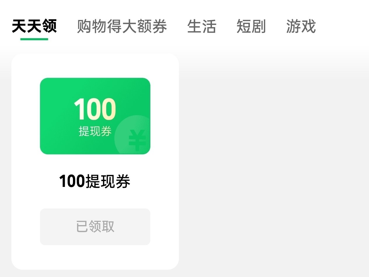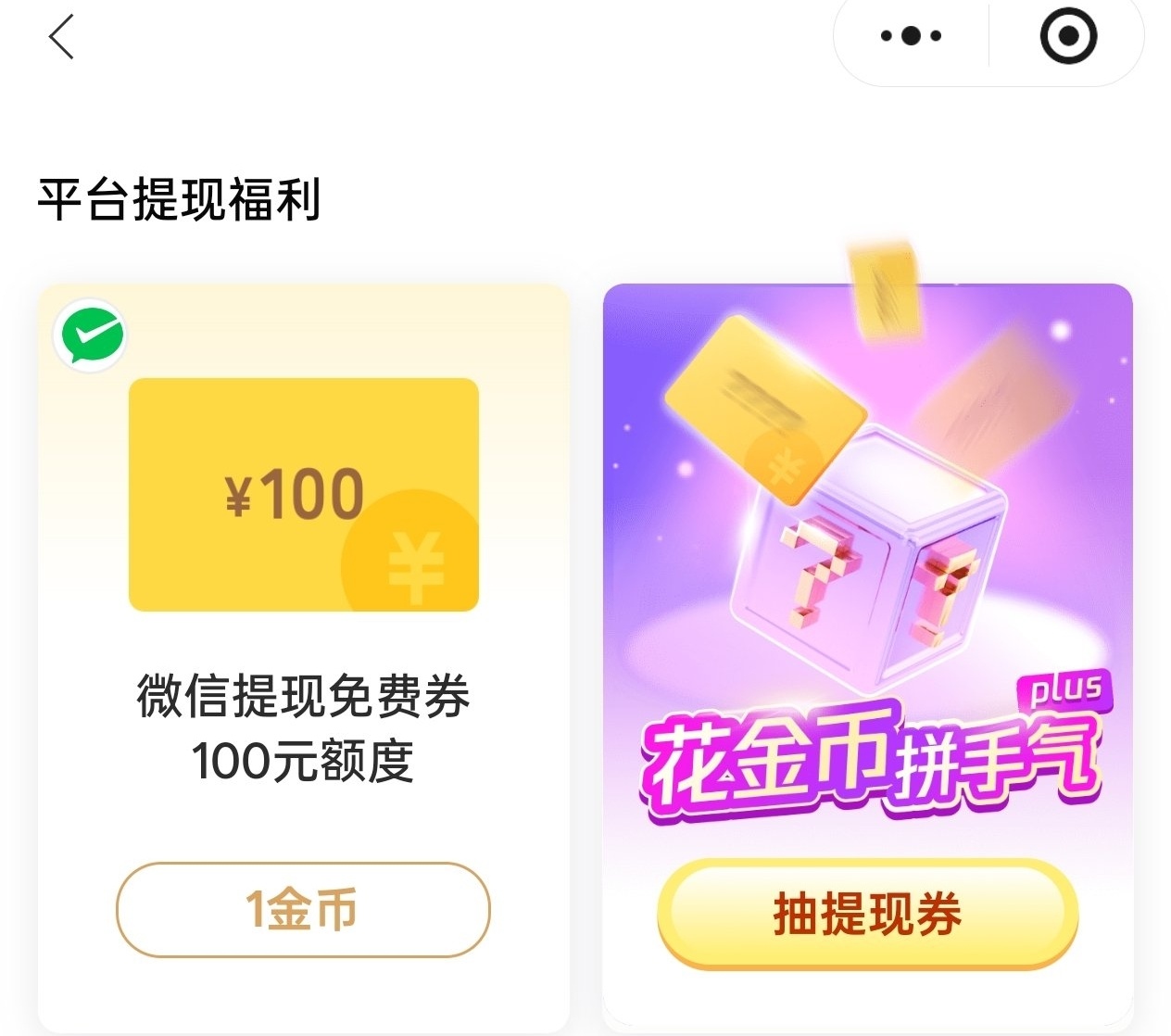 点击提现专区的左边就是金币换提现券,每周都有一个固定的100提现券,和用金币抽奖的提现券(一开始还能抽到888,666等大额的,后面越来越小,大概率都是166了)