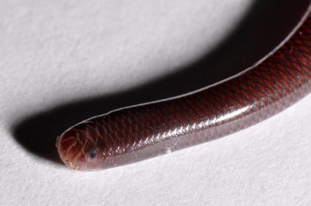 眼睛是几乎看不见的小点点,小眼睛上覆盖着半透明的鳞片,这些蛇几乎完全失明。