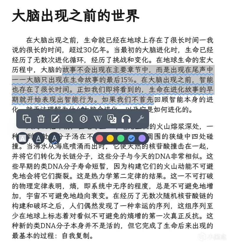 内置翻译 + 词典 集成 DeepL 翻译引擎,选中外文段落一键翻译,无需切换软件 内置词典 + 维基百科查询,长按单词直接看释义、查百科,外文原著阅读无障碍