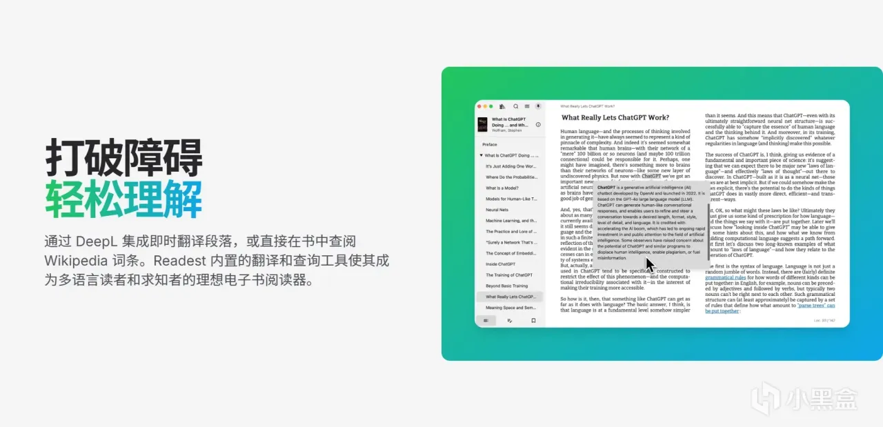 智能效率工具:内置翻译、词典、笔记导出、分屏对比、AI 朗读,学习阅读效率翻倍
