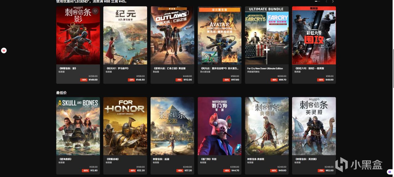 以上便是本次育碧传奇大促的主要促销游戏,没有看到自己喜欢的游戏的,也可以直接上去找找,本次折扣我觉得较为合适入坑的是《刺客信条:影》、《波斯王子》捆绑包。