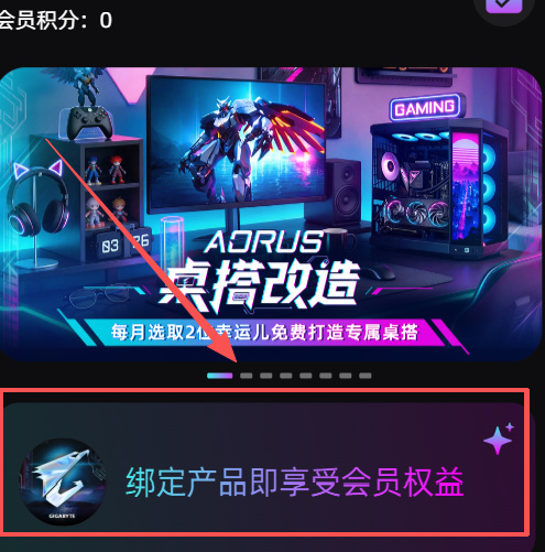 在VX小程序搜索AORUS俱樂部,點擊綁定產品,