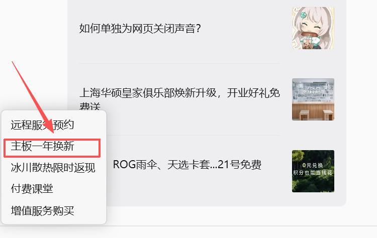 來到聊天界面,點擊下方增值服務菜單,點擊主板一年換新