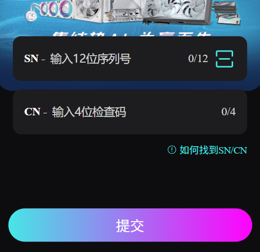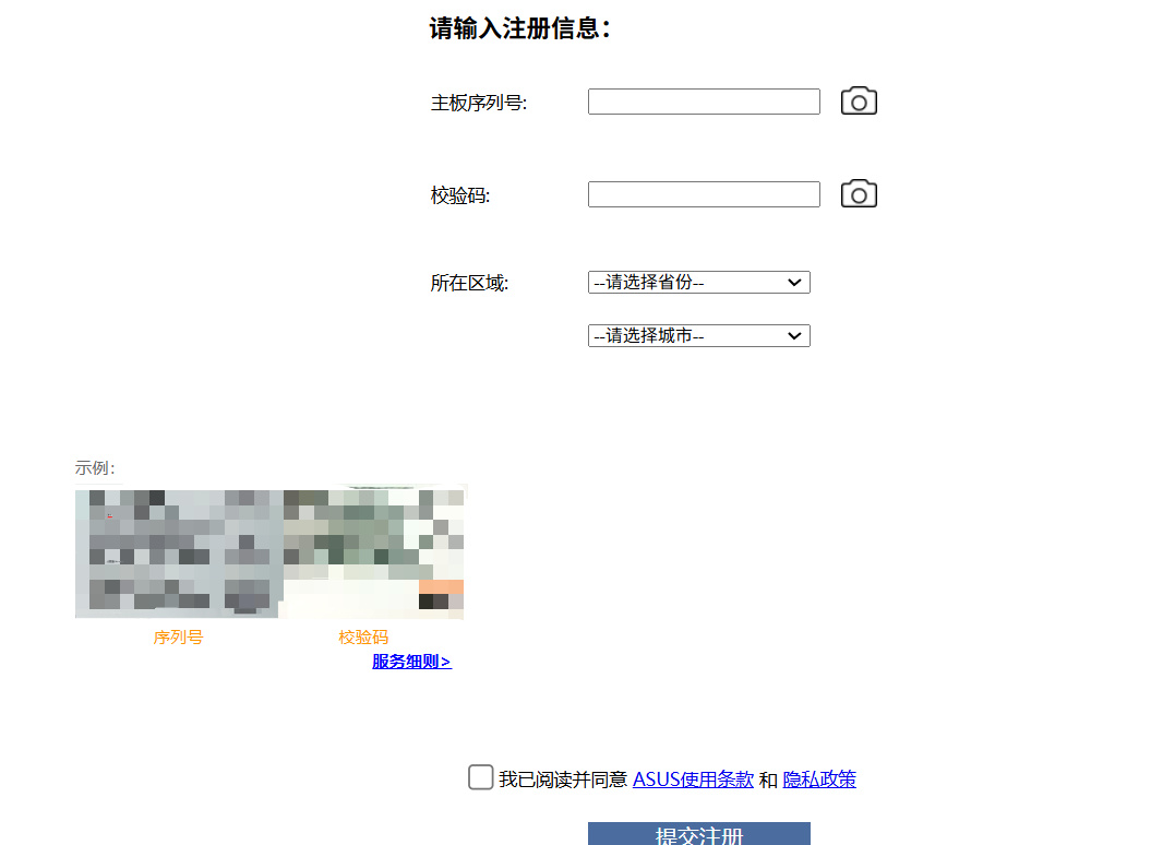 進去之後點註冊,填好主板的SN碼、校驗碼和地區,提交就完事了。一年換新服務,直接拿下