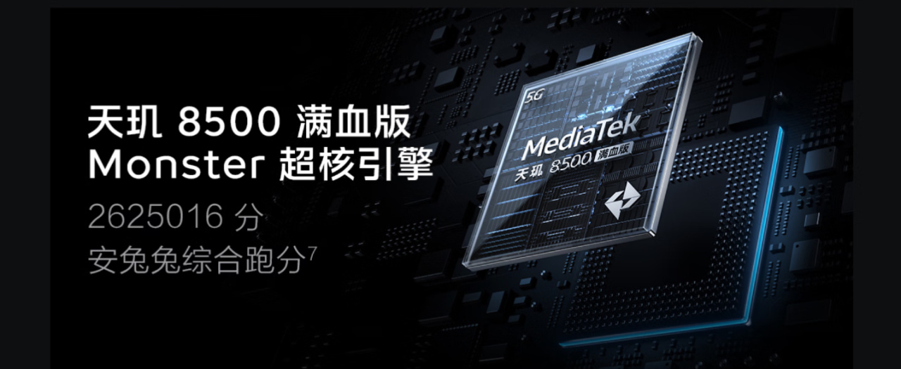 處理器搭載天璣 8500 Elite,爲滿血性能版本。