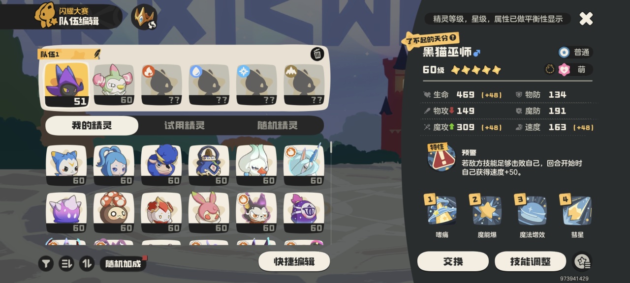 正常首发独角兽首领化叠折射,只要独角兽叠满2-3层折射,基本能1打3甚至1穿6,非常的轮椅,有些时候如果我们克制对面,也可以直接首领化接克制技能秒对面。在对面有爆发、或者清楚BUFF的精灵的时候,比如黑猫巫师,我们就需要换下独角兽,上两个随机精灵把魔能爆和彗星挡下了之后,再上独角兽即可。