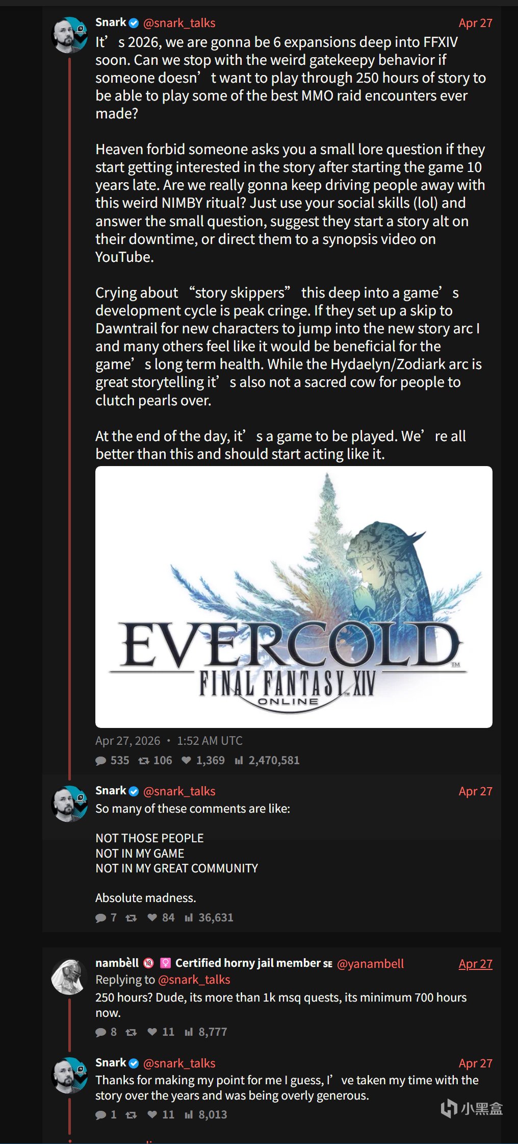随着《最终幻想14》(FFXIV)全新资料片《EVERCOLD》的相关信息在社交媒体上传播,关于新玩家准入门槛的讨论再次成为社区焦点。知名博主Snark发文指出,在游戏即将迈入第六个大型资料片的当下,强制新玩家体验长达数百小时的旧剧情已成为阻碍游戏注入新鲜血液的巨大屏障。