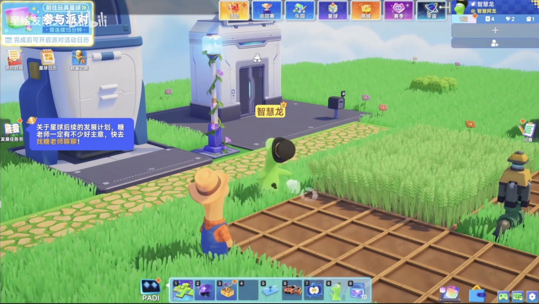 等到大家的星球已經逐步搭建成型,此時玩家就可以招募不同功能的NPC夥伴,逐步擴展商業設施,吸引遊客,提升收益與口碑。NPC本身具備獨立作息與行爲邏輯,既是玩法循環的一部分,也承擔了一定的“陪伴感”。