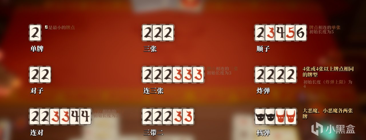 在你的手上,有很多手牌。第一个打完所有手牌的人将会获胜。而游戏中有很多牌型,就和扑克牌差不多,比如说对手打出了23456这个顺子,你就可以打出34567或者更大的数字管上。