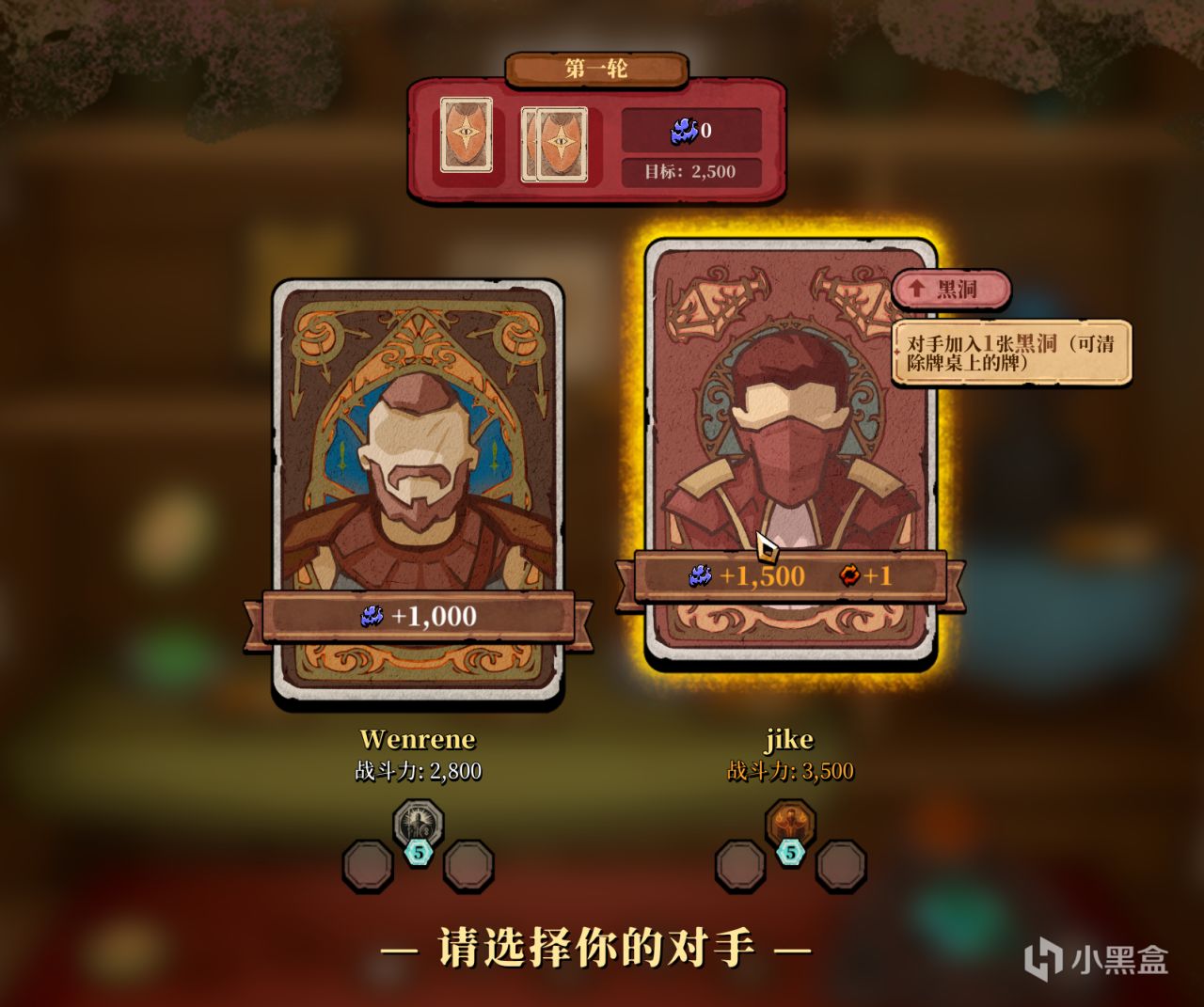 第一轮先打野怪,这个野怪的效果是所有人手牌-7,也就是更容易打完所有的手牌结束战斗。