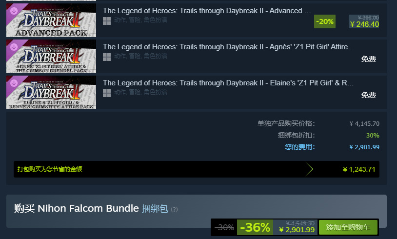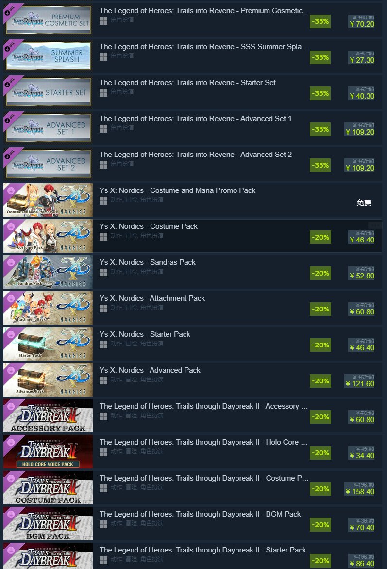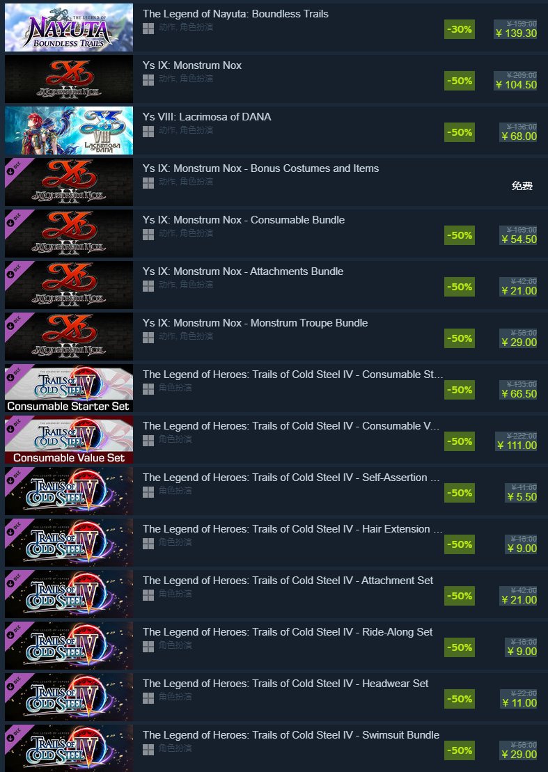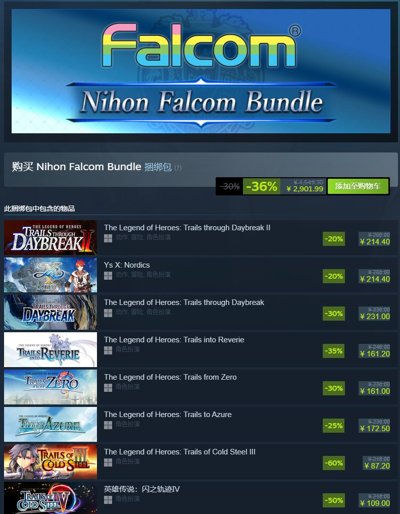 不过更有意思的是,我在逛Steam的时候,看到了“Nihon Falcom”的游戏捆绑包。