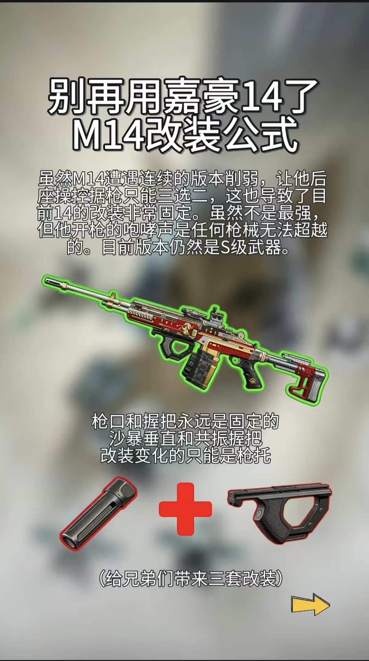 小编给小伙伴们整理了一下S9赛季M14的改装方案,供大家参考。