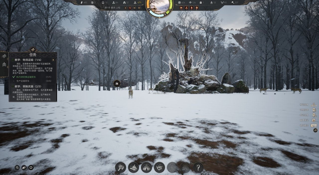 雖然主播是第一次玩的,但我認爲以我的遊戲天賦上手不是難事!外加遊戲內置了完整的視頻教學,我跟着攻略走將村子輕鬆的搭建起來了,正當得意洋洋之時我遇到了一羣狼。