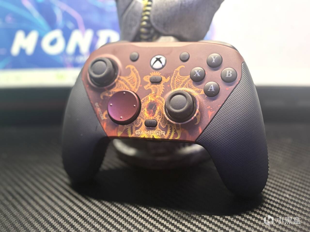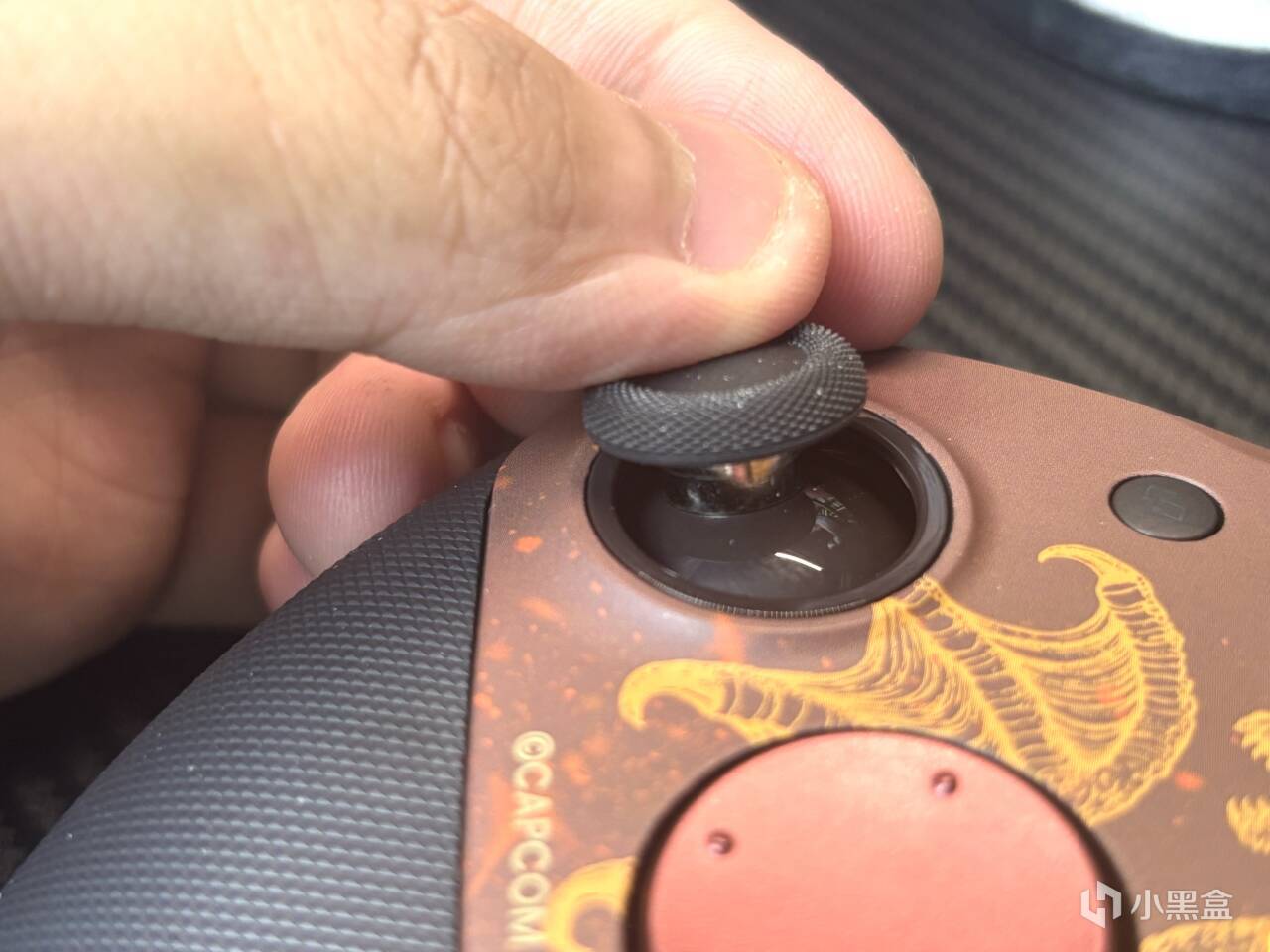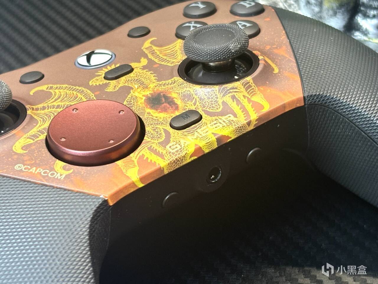 先來講講聯名的要素,這一次的聯名要素其實全部聚集在主面殼處,兩側的握把並沒有聯名細節,而主面殼處是一條噴火的巨龍,說實話,搭配上手柄整體的暗紅色調。真的很帥!而且依舊是可拆卸的磁吸面殼設計,也算是當下手柄的標配了,拆下之後,其實能夠看到,裏面的透明保護殼,也是暗紅色的色調。小細節這一塊,小雞你贏了。