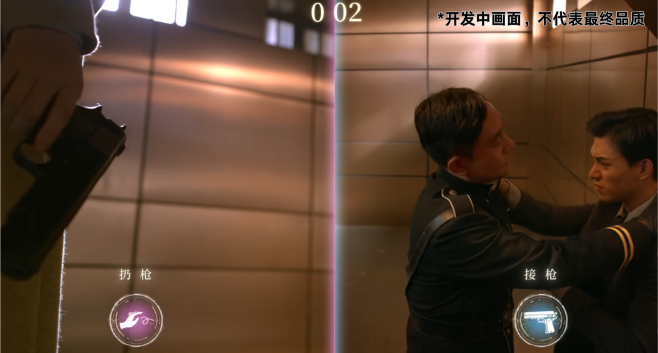 男主這邊在舉槍暗殺,女主那邊可能在搜索線索。遇到雙人 QTE 或者選劇情的時候,只要有一個人隱瞞線索或者點錯了,兩人直接手拉手打出 GG,當然啦,作爲互動影遊,回檔也很容易,並沒有什麼處罰!