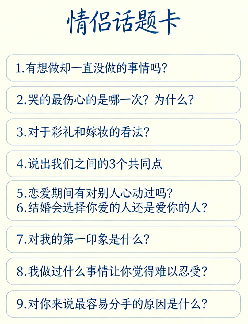 今天給大夥支幾招,盤點 5 個能迅速把你們拉回同頻狀態的互動玩法。隨便挑一件試試,保準比干巴巴地問“今天開心嗎”強一萬倍。😎