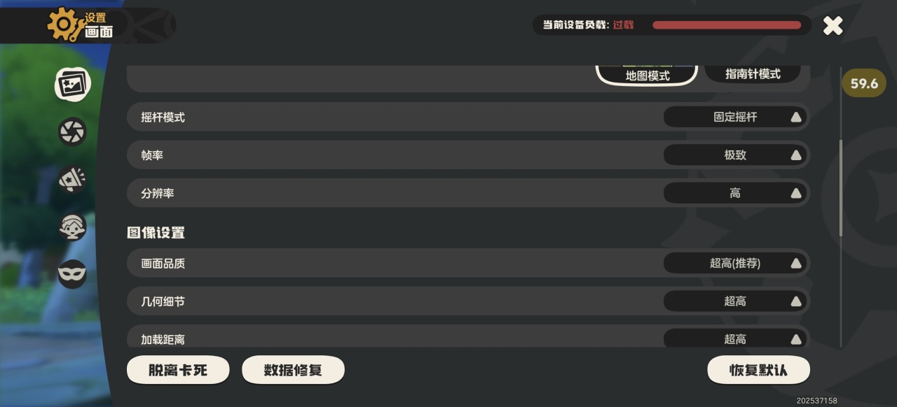 这里直接将游戏帧率和分辨率拉到最高,下面其他画面设置也都拉到超高,这时能看到右上角已经提示当前负载已过载,关键是iQOO Neo 11的配置已经很强了,所以说这款手游还是比较吃手机配置的。
