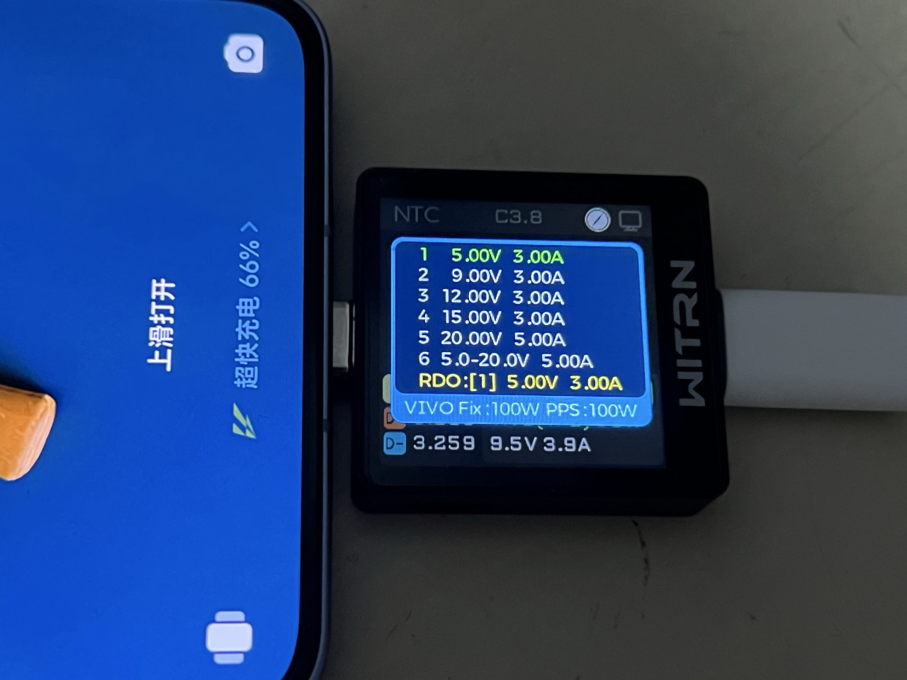 手机用自带的充电套装支持最高100W的有线闪充,此外还支持PPS和PD协议,从0到100%补能全程只要半小时不到(iPhone用户表示羡慕当下安卓手机的快充)。