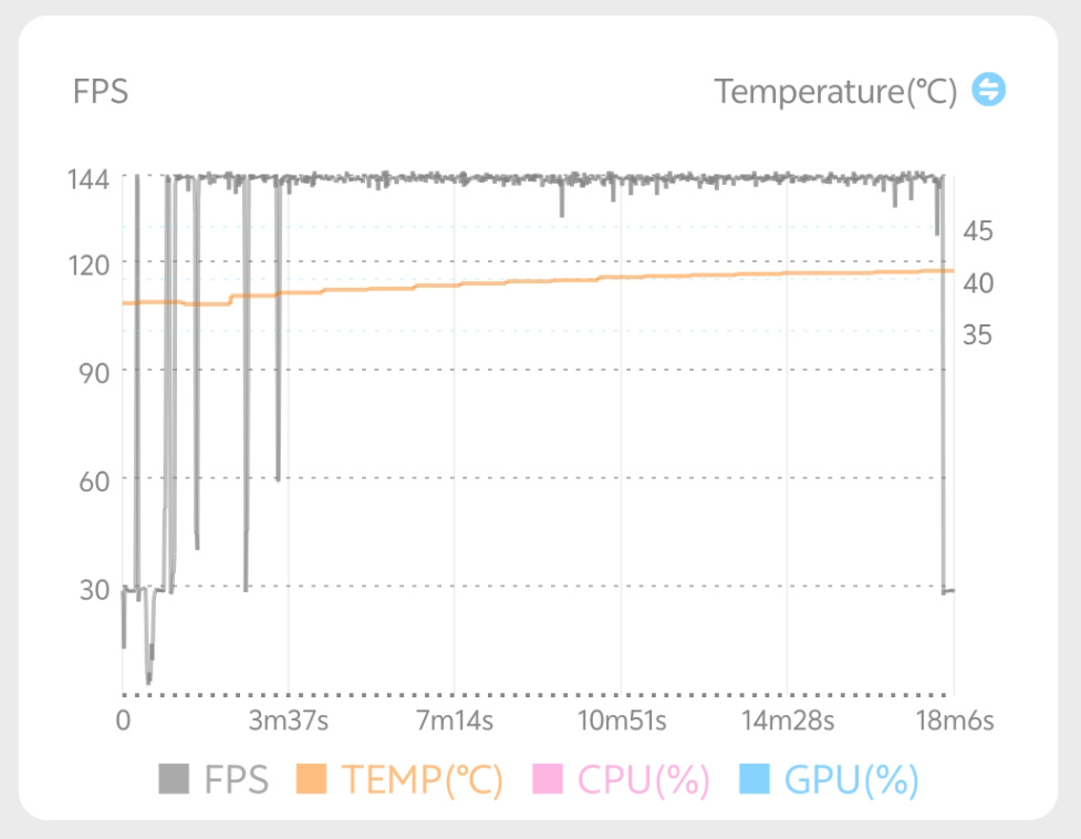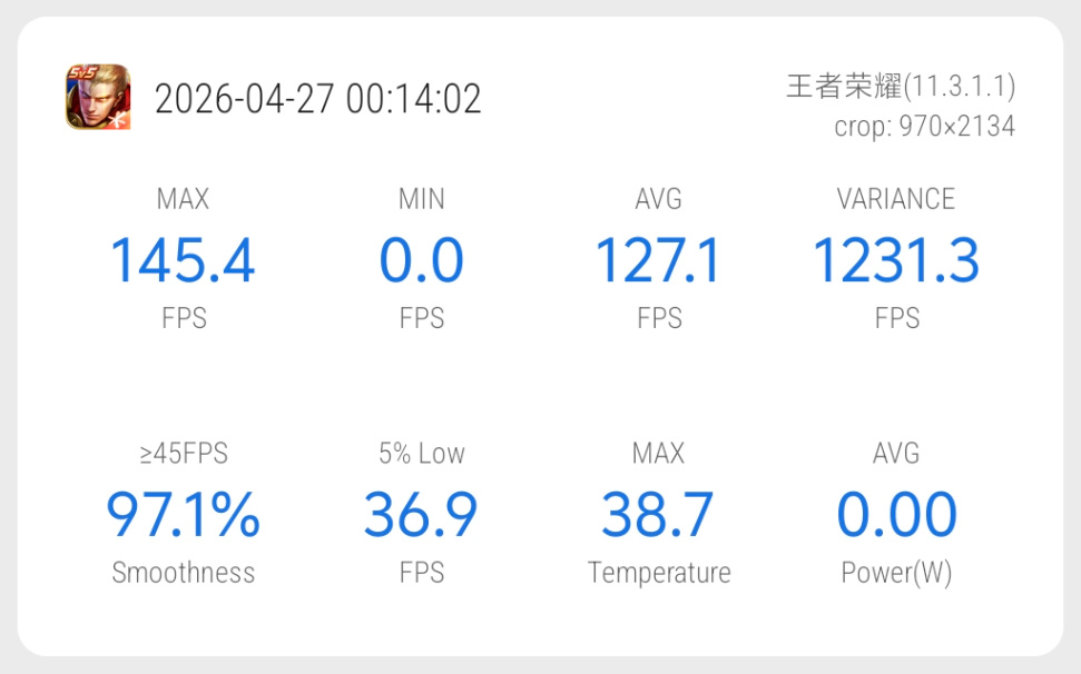 游戏的峰值帧率能跑满这块屏最高144Hz的刷新率,平均帧也有127FPS左右,对比之前的安卓机在英雄技能释放动画以及粒子效果上要更流畅丝滑。