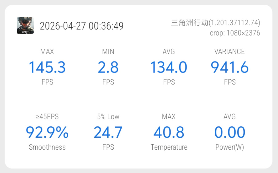 游戏的峰值帧率依旧能跑满iQOO Neo 11的这块144Hz屏,平均帧也有134FPS,游戏里视角转换没有断帧感,依旧丝滑流畅。
