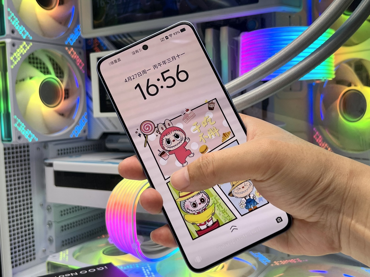 Neo 11的正面是一块6.82英寸的直面挖孔屏,边框很窄,出厂预贴了AR增透膜,能减少反光、提升通透感,不过手感比较涩,想要打游戏的那种顺滑感还得换钢化膜。