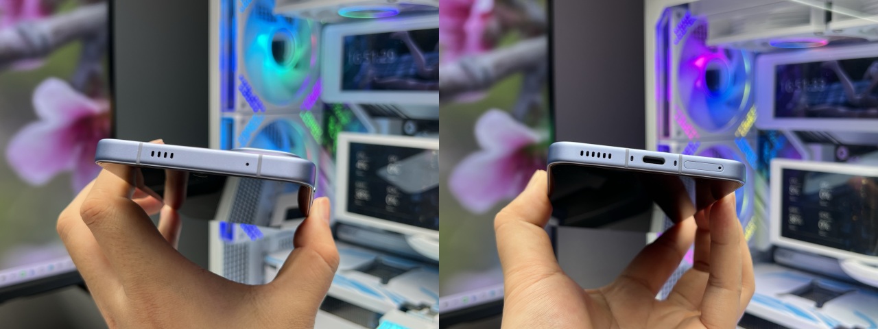 侧边电源键+音量键、顶部和底部双扬声器、SIM卡槽放在了底部。