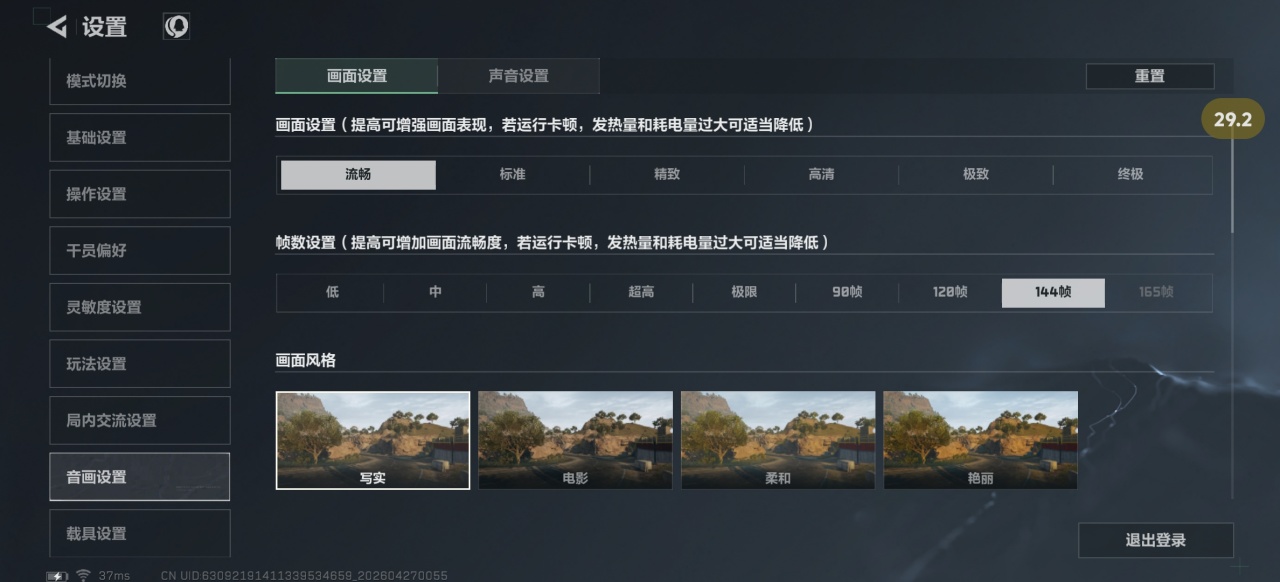 当下火热的FPS手游《三角洲行动》,这里游戏的音画设置没办法做到既要高画质又要高帧率,选择144帧率游戏会自动给你降到流畅画质,如果你选择终极画质,帧率会匹配到极限。