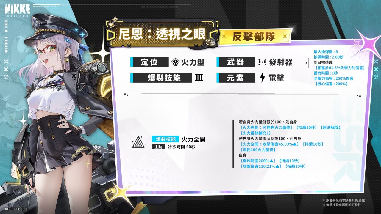 全蓄力命中目标时触发火力爆发造成额外伤害,若处于爆裂时间时再次提供额外伤害!