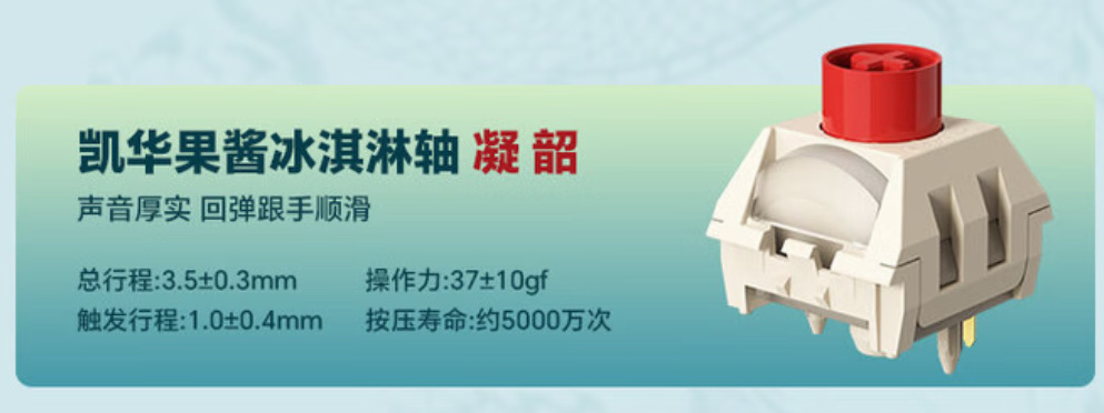 韶和凝是凯华果酱冰淇淋轴:声音比较闷,回弹力量大,顺滑,寿命5000万次。