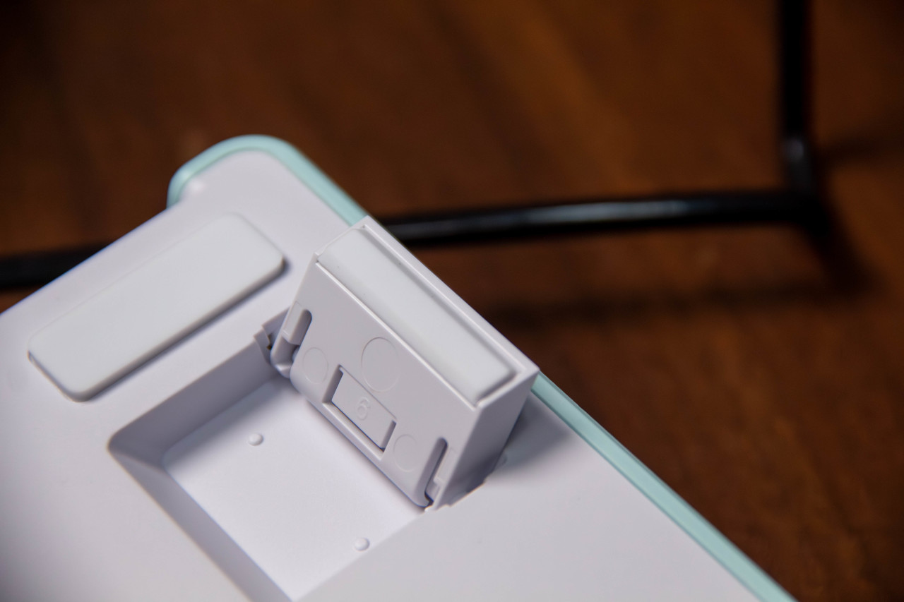 脚垫单独做了削切,不是像其他键盘一样粘个硅胶脚垫就完事了。它是嵌在上面并且做了削切,一定程度上能减缓脚垫脱落的情况集,即使其他产品做的同样的脚贴,keychon已经进入下一个时代