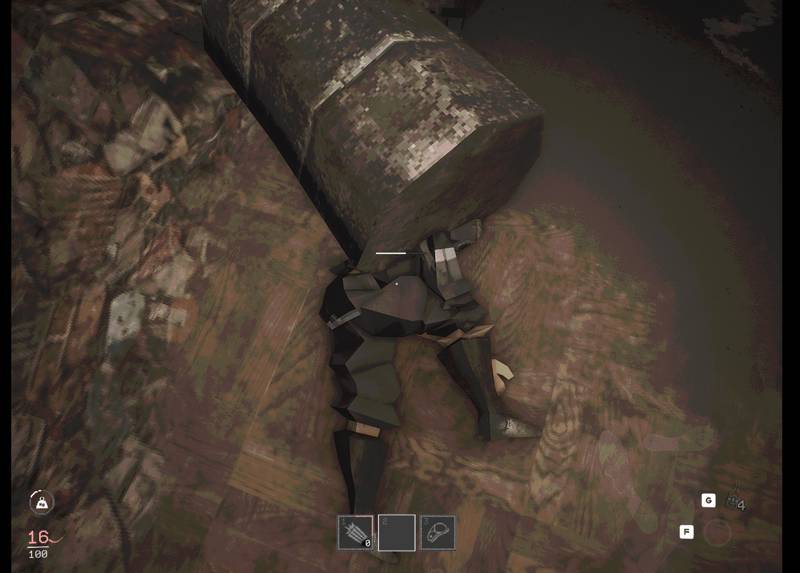 清理者本该配备防护服,但在资源匮乏的吉加赫鲁晓夫卡,他们只有捡来的“低端”武器——耙子、木板甚至人腿骨,需要利用一切资源手搓武器、制作食物生存下去。