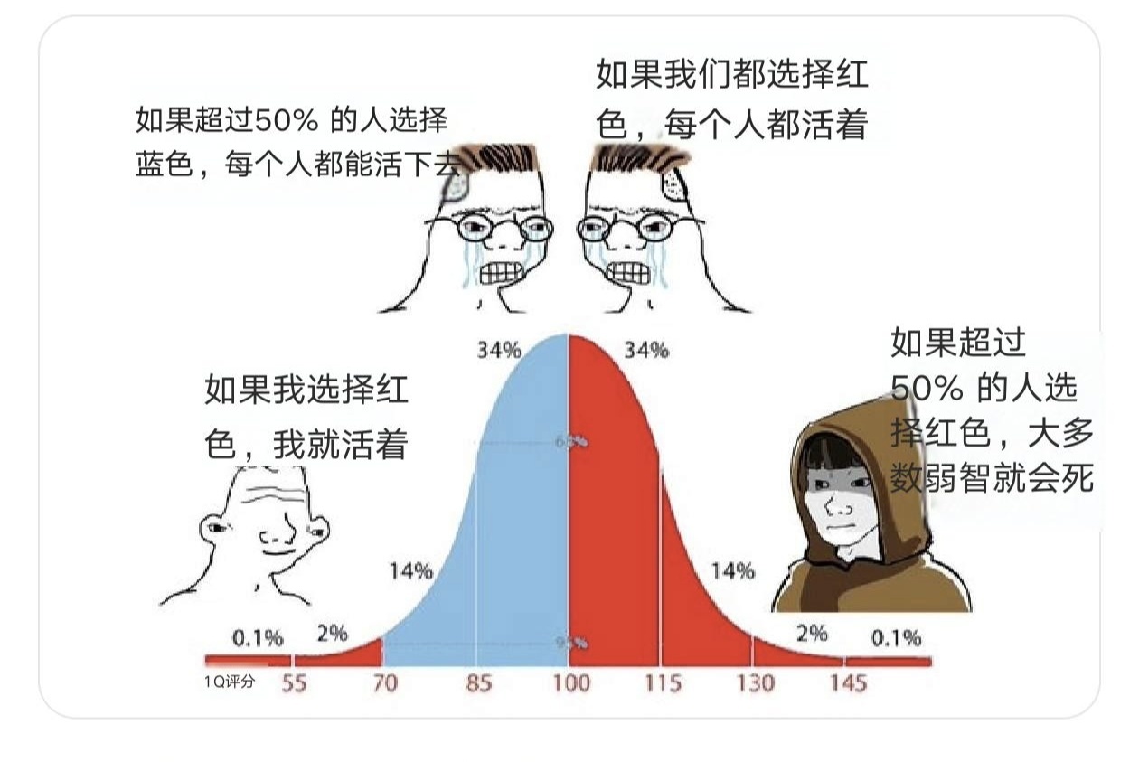 ·选蓝色按钮,必须全世界超过一半人选蓝,你才能活