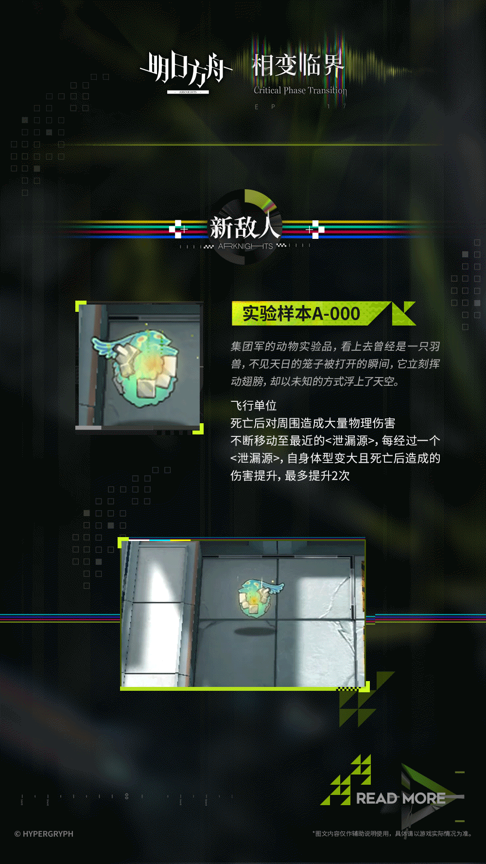 實驗樣本A-000:飛向泄漏源的自爆兵,泄漏源最多提高它2次傷害且變大。飛行單位,死亡後對周圍造成大量物理傷害,不斷移動至最近的泄漏源,每經過一個泄漏源,自身體型變大且死亡後造成的傷害提升,最多提升2次