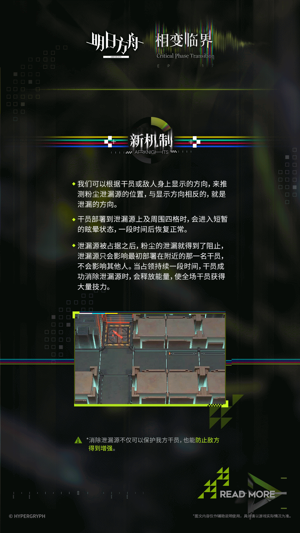 關卡機制總結,關卡有泄露源持續造成傷害,根據幹員綠色特效反方向找泄露源放幹員在週迴4格被眩暈扣血來控制,控制後我方技力回覆【幹員綠色特效的反方向是泄露源,也就是圖中黑角部署方向。離的越近受到傷害次數越多,傷害越高,放幹員在泄露源和周圍,該幹員會被眩暈扣血(之後幹員放旁邊不會受到影響),一段時間後控制泄露源,我方幹員技力回覆。或者過段時間自動現形但造成1次高傷害】